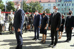 predseda Národnej rady SR Boris Kollár, predseda vlády SR Igor Matovič, minister obrany SR Jaroslav Naď, minister