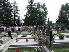 pochovaní na tomto cintoríne bez mena, len pod väzenským číslom. Pamätnú tabuľu požehnal