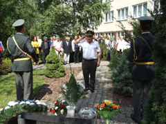 stráže SR delegácie hostí kládli vence k pamätnej tabuli. Pietneho aktu sa zúčastnili: starší vojenský poradca z Vojenskej kancelárie