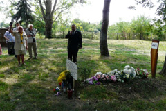 pri symbolickom hrobe neznámeho politického väzňa, ku ktorému položil veniec za KPVS politický väzeň Vladimír Domorák a panychídu za zomrelých