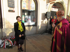 protosynkel o. Ľubomír Petrík. Program pokračoval pietnou spomienkou pri pamätnej tabuli, na ktorej sa tiež zúčastnili predstavení a bohoslovci