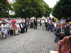 Po skončení sv. omše sa prítomní presunuli pred budovu Mestskej knižnice, na námestí, kde pred zahalenou tabuľou privítala prítomných vedúca