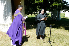 sr. Tatiana Repková SCSC. Nasledovala pobožnosť krížovej cesty, zameraná na utrpenie a myšlienky sr. Zdenky, ktorú viedol